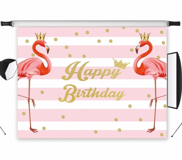 7 x 5 ft Flamingo Birthday Backdrop