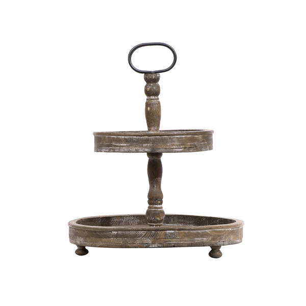 Two-Tier Brown Wood Tray